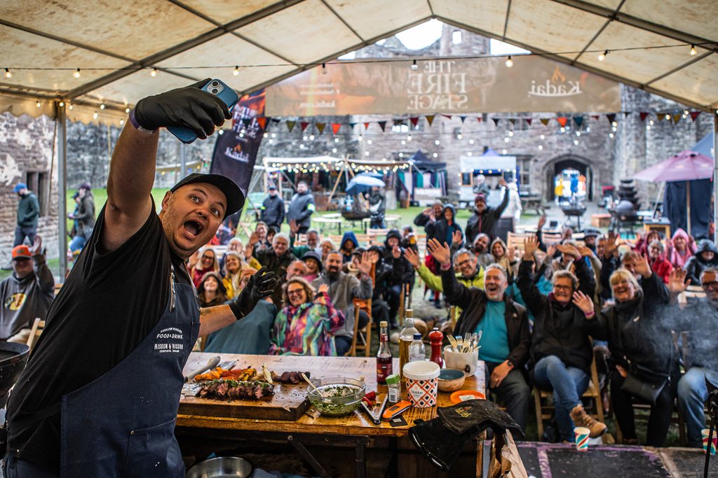 But over time, something clicked. I realised that fire was more than heat, it was alive. You could read it, feed it, respect it. About eight years ago, I got hooked on live fire cooking properly. Since then, it’s taken me all over the UK. From cooking demos at Tom Kerridge’s Pub in the Park, to hosting the fire stage at the Great British Food Festivals, and even becoming a finalist at the British Live Fire Cooking Championships.